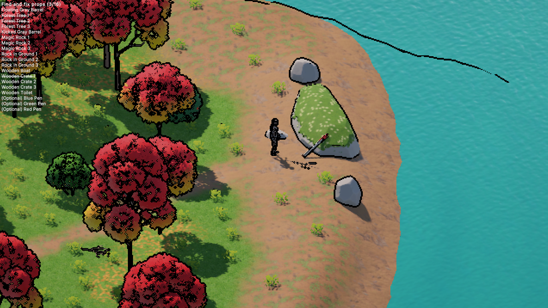 - A list of all props is in the top left corner